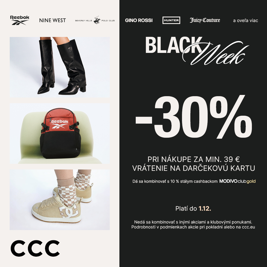 ZĂskajte -30 % pri nĂĄkupe od 39 ⏠s vrĂĄtenĂm na darÄekovĂş kartu. Ponuka platĂ do 1. 12. a dĂĄ sa kombinovaĹĽ s 10 % cashbackom MODIVOclub Gold. NakĂşpte vĂ˝hodne v CCC! đď¸â¨